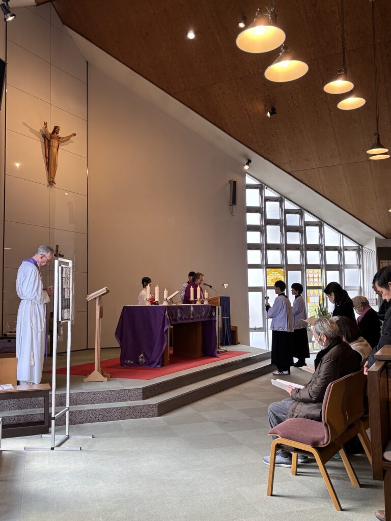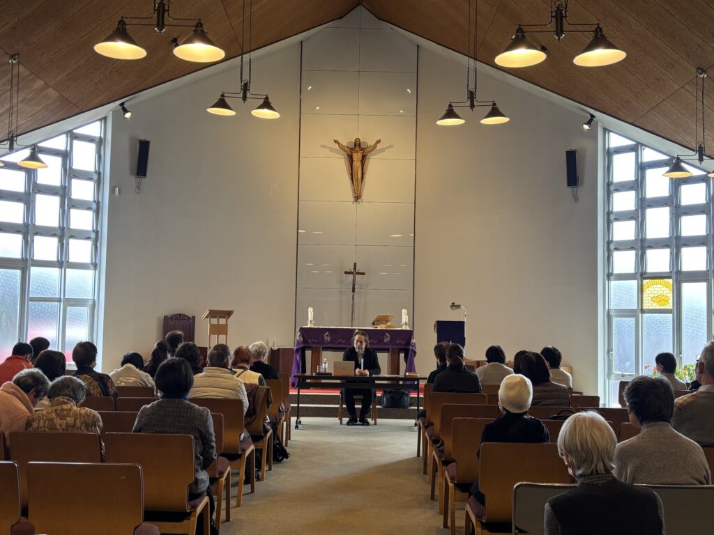 3月8日、四旬節第3主日に、カリタスジャパンから瀬戸高志神父様(レデンプトール修道会)をお招きし、ミサの司式と黙想会の講話をしていただきました。また、カリタスジャパンの活動についても担当の方から紹介いただき、いつくしみと愛のわざについて思いを巡らす黙想のひとときとなりました。